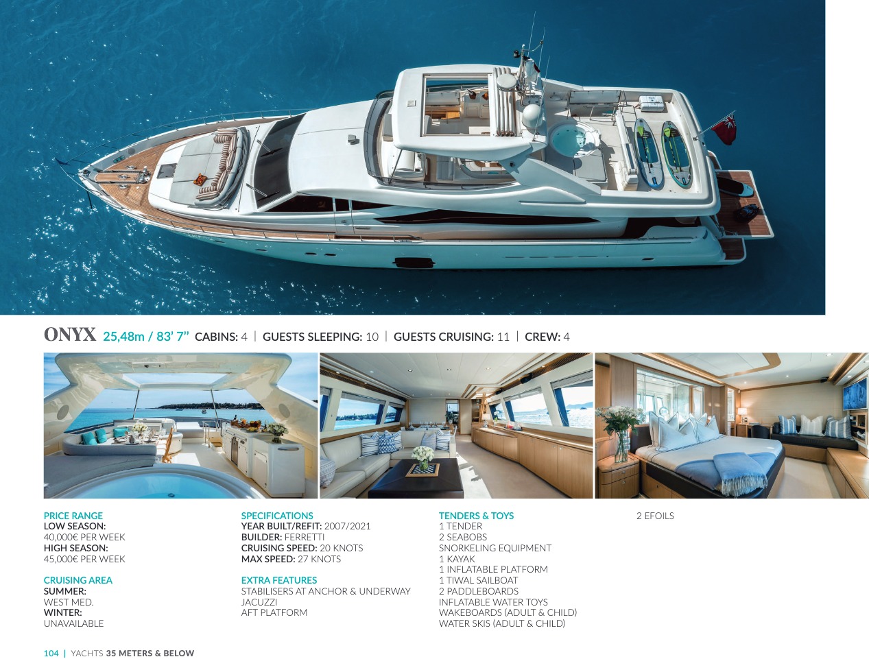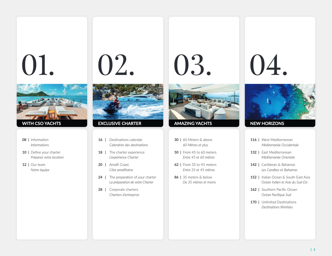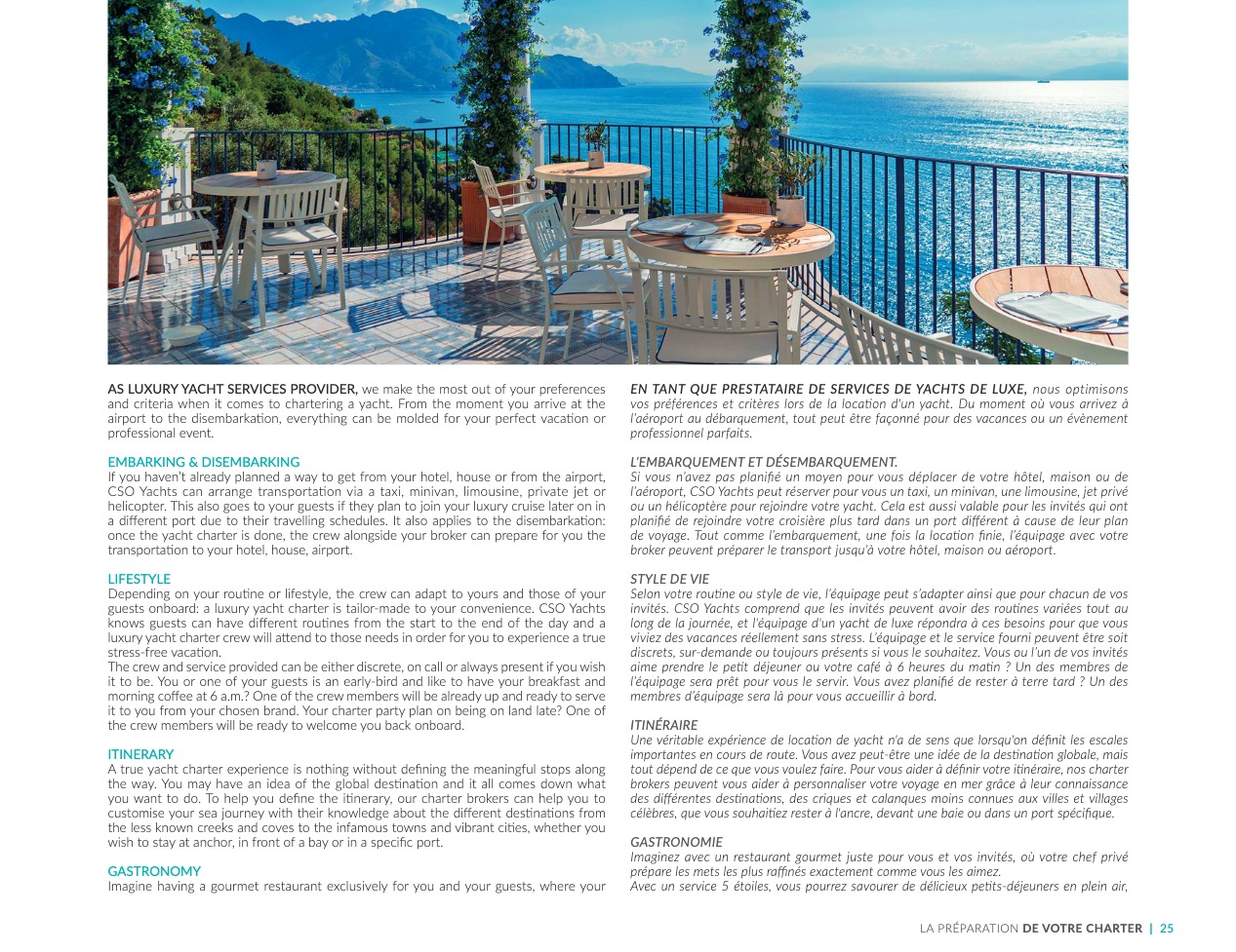 CSO Yachts is a world-renowned player in the brokerage of luxury yachts. With more than 60 years of experience, our team has in-depth knowledge of the decisive elements that make your final choice the best of all: technical characteristics and specificities of the vessels, crews, services and equipment. CSO Yachts offers exceptional pleasure boats for rent or purchase. They all come from prestigious shipyards such as Benetti, Perini Navi, Devonport, Princess, Sunseeker, Royal Huisman Shipyard and Pershing. Our extensive expertise, regarding sales, rental and management of luxury yachts, gives us the ability to offer you precise advice that is perfectly adapted to your expectations. We are also committed to ensuring that your cruise invariably offers you a sensational and unique vacation, by accompanying you upstream in a supremely successful organization, with impeccable recreational logistics.