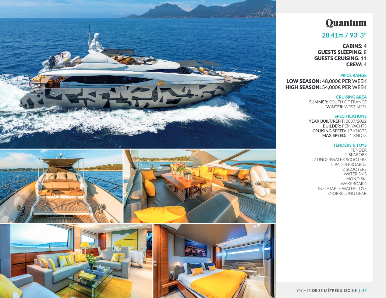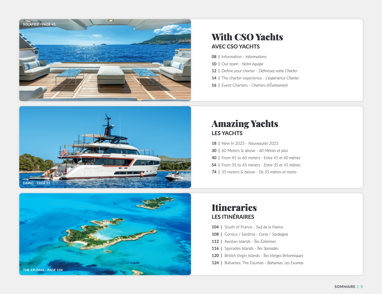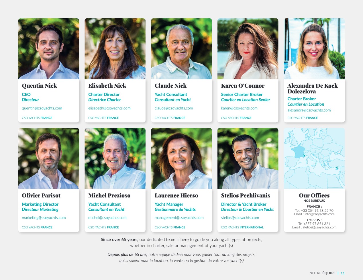 CSO Yachts est un acteur reconnu mondialement pour le courtage des yachts de luxe. Notre équipe, riche d’une expérience de plus de 60 ans, dispose d’une connaissance approfondie des éléments décisifs qui font de votre choix final le meilleur d’entre tous : caractéristiques techniques et spécificités des navires, équipages, prestations et équipements. CSO Yachts propose des bateaux de plaisance d’exception à louer ou à acheter. Tous sont issus des chantiers prestigieux tels que Benetti, Perini Navi, Devonport, Princess, Sunseeker, Royal Huisman Shipyard ou encore Pershing. Notre expertise plurielle, à savoir vente, location et gestion des yachts de luxe, nous donne la capacité de vous conseiller de façon précise et parfaitement adaptée à vos attentes. Nous nous attachons en outre à ce que votre croisière vous offre invariablement des vacances sensationnelles et uniques, en vous accompagnant en amont dans une organisation souverainement réussie, avec une logistique parfaite.