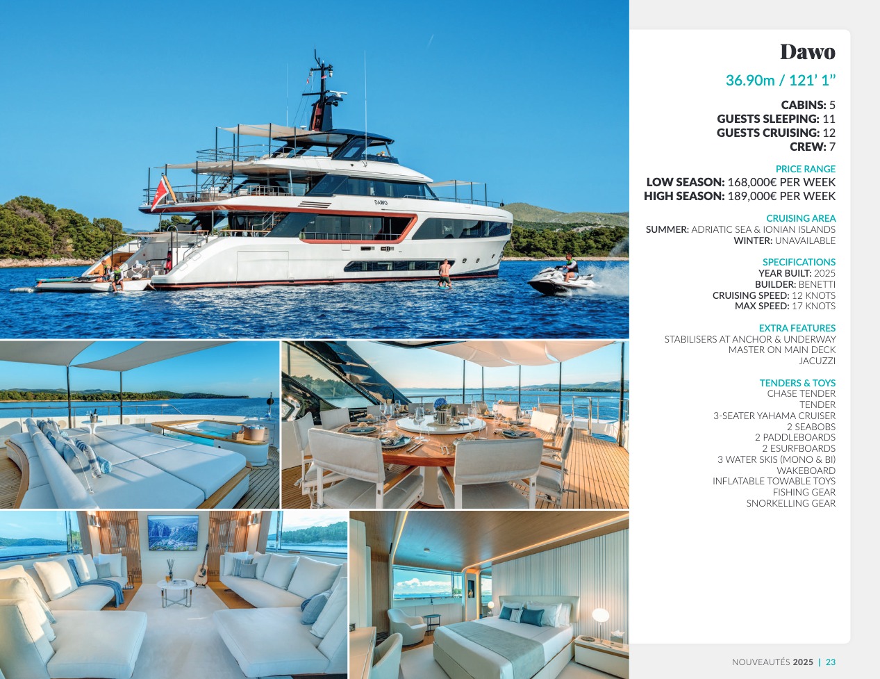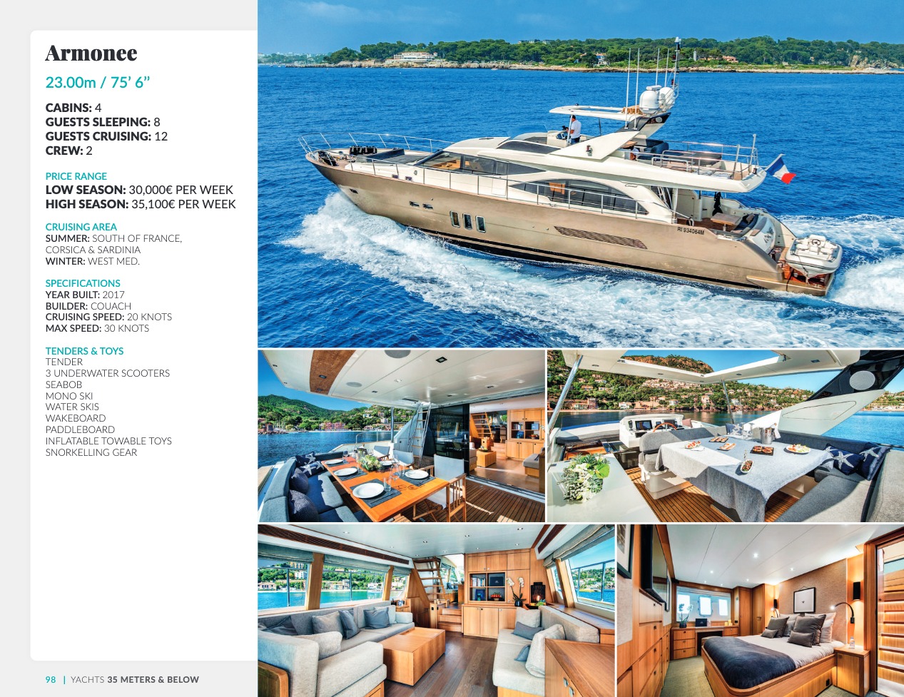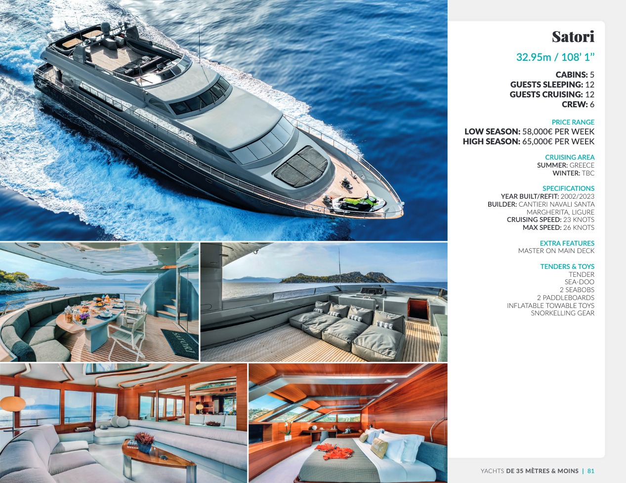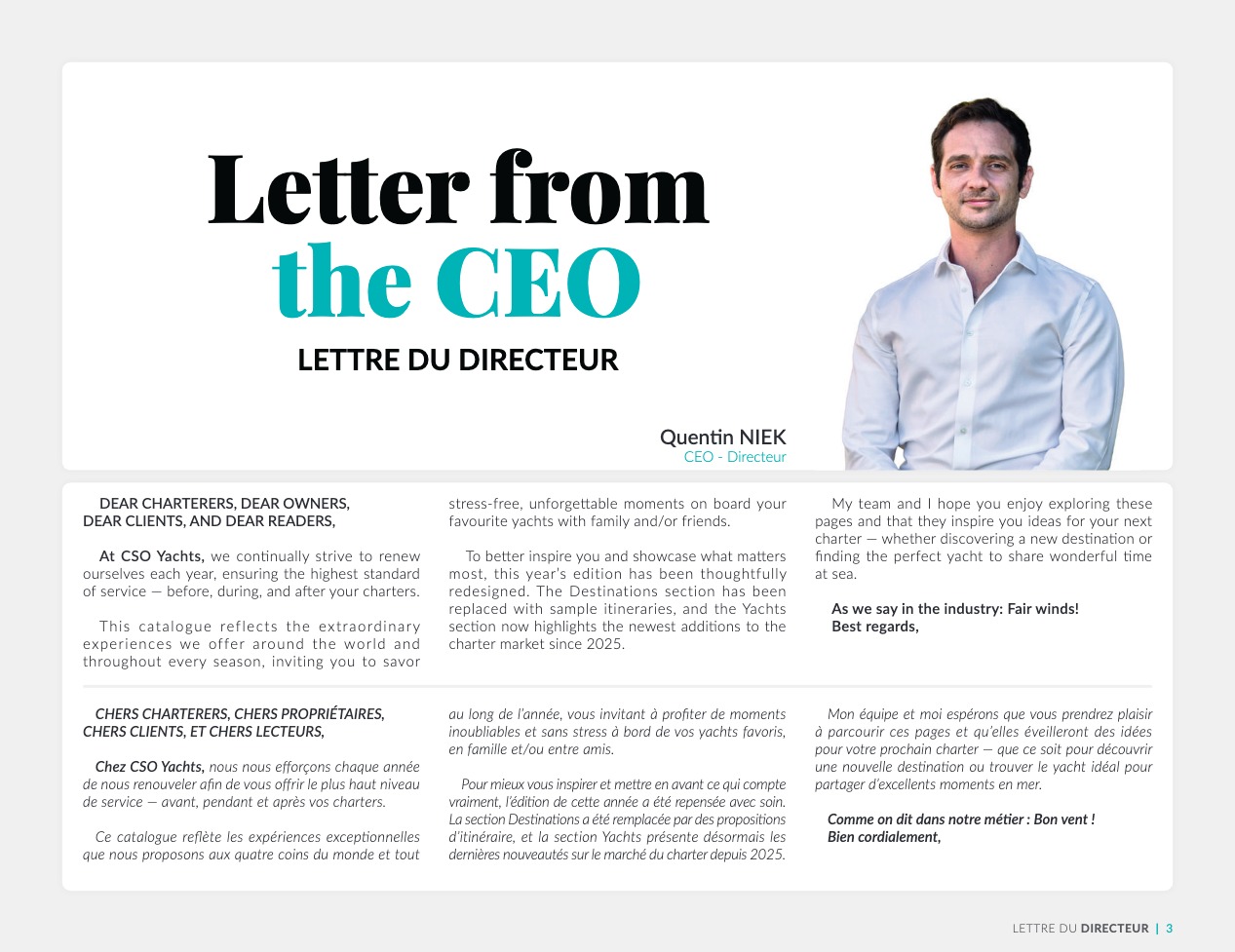 CSO Yachts est un acteur reconnu mondialement pour le courtage des yachts de luxe. Notre équipe, riche d’une expérience de plus de 60 ans, dispose d’une connaissance approfondie des éléments décisifs qui font de votre choix final le meilleur d’entre tous : caractéristiques techniques et spécificités des navires, équipages, prestations et équipements. CSO Yachts propose des bateaux de plaisance d’exception à louer ou à acheter. Tous sont issus des chantiers prestigieux tels que Benetti, Perini Navi, Devonport, Princess, Sunseeker, Royal Huisman Shipyard ou encore Pershing. Notre expertise plurielle, à savoir vente, location et gestion des yachts de luxe, nous donne la capacité de vous conseiller de façon précise et parfaitement adaptée à vos attentes. Nous nous attachons en outre à ce que votre croisière vous offre invariablement des vacances sensationnelles et uniques, en vous accompagnant en amont dans une organisation souverainement réussie, avec une logistique parfaite.