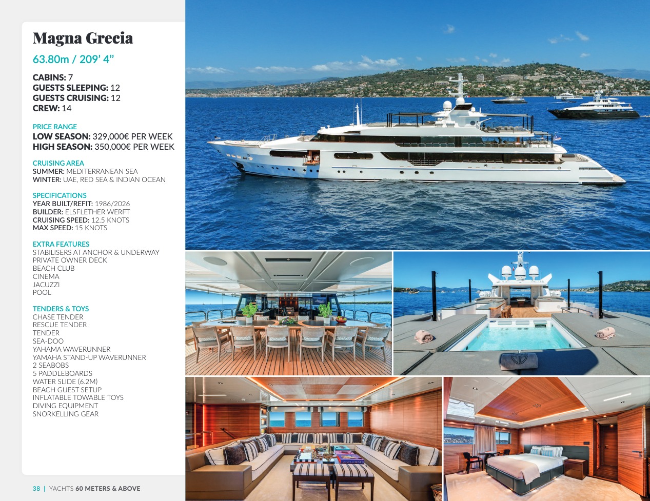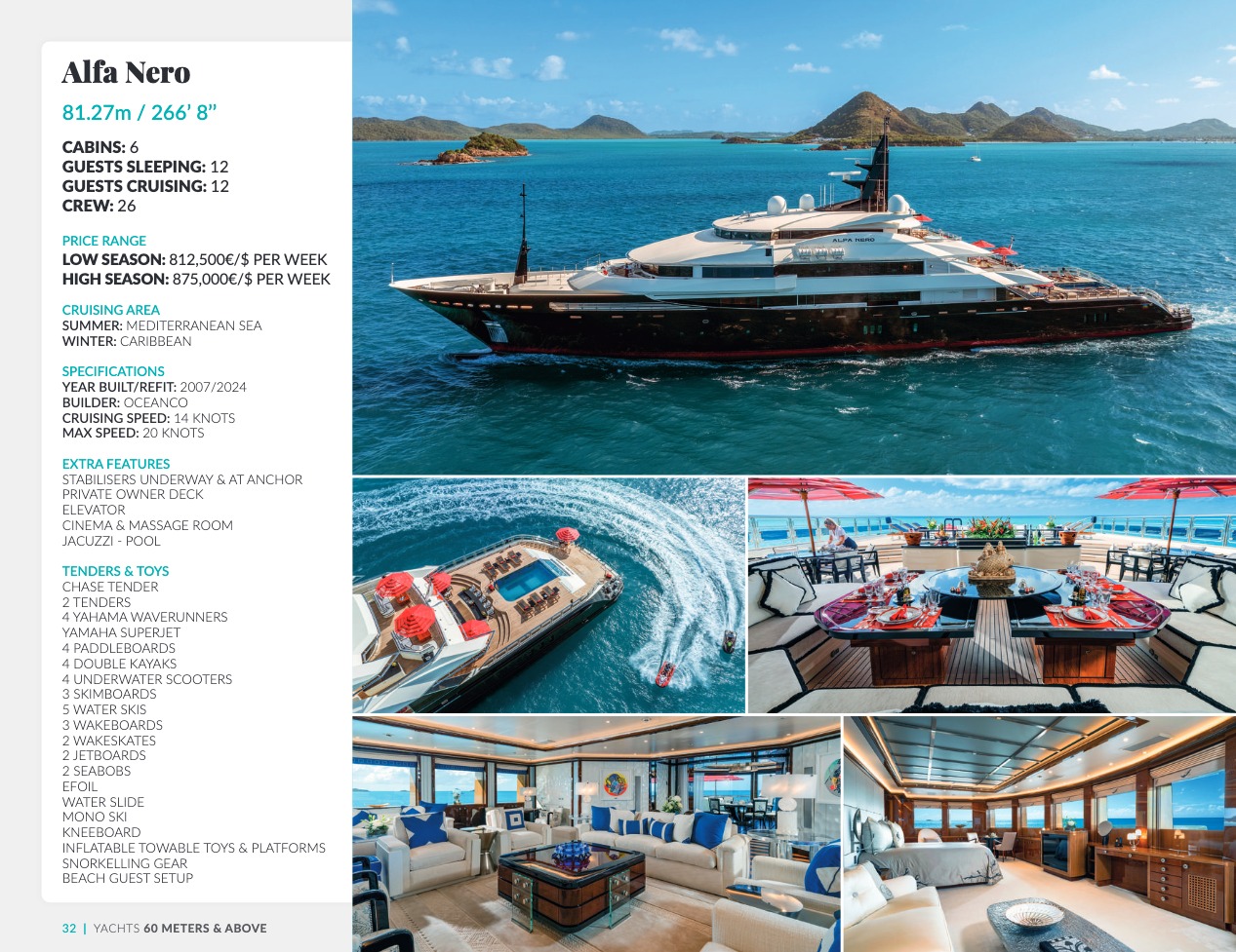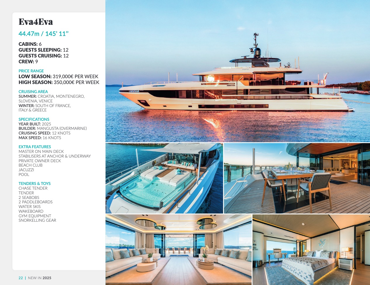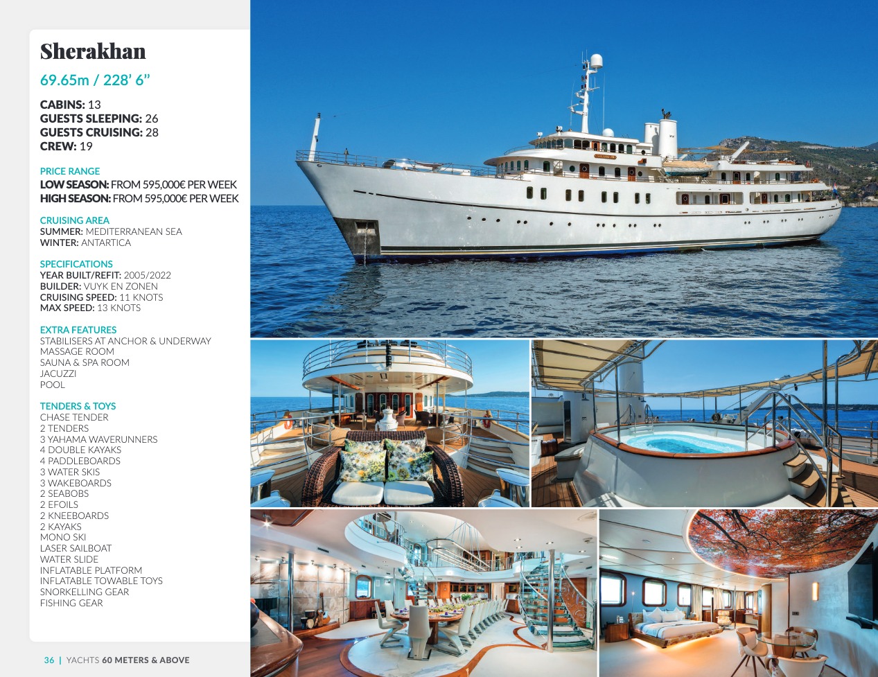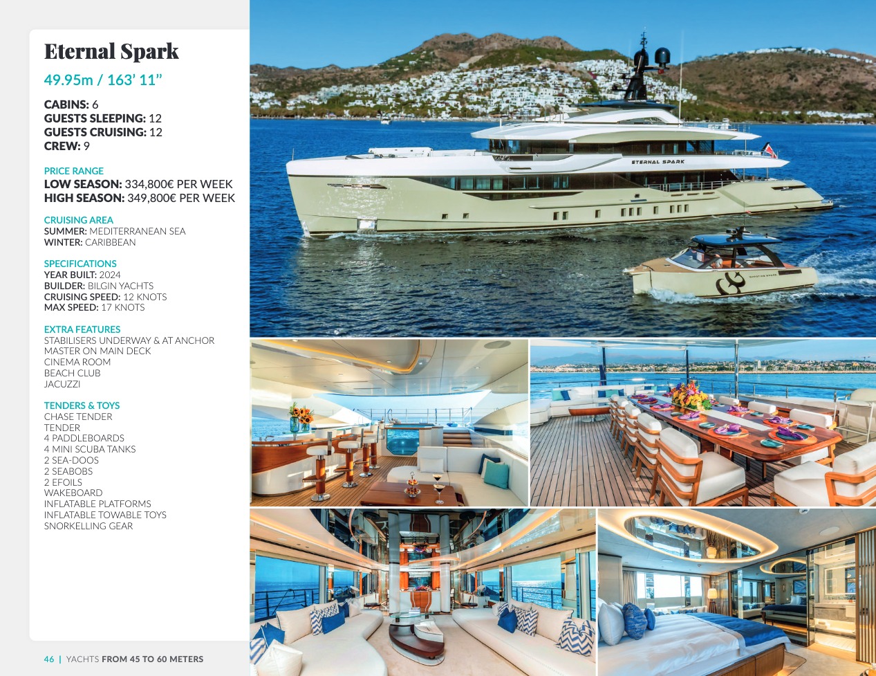 Ce qui distingue le yacht de luxe entre tous est le caractère d’exception des prestations et du bien-être paradisiaque qu’il offre. Avec une recherche de qualité, d’innovation et d’esthétique qui se retrouvent dans chaque détail, vous bénéficierez d’une expérience hors du commun, et ce, que vous ayez choisi pour des séjours de courte durée, ou pour en profiter à votre guise toute l’année. Design, technologie, puissance de navigation, agencement et décoration intérieur haut de gamme transforment ces navires en paradis voguant sur les eaux de toute la planète. Le yacht de luxe peut être un élégant voilier basé en Méditerranée tel que Rosehearty, un catamaran comme Hémisphère sillonnant le pacifique Sud ou un superyacht à l’image de Bella Vita du chantier Benetti. Le séjour s’y présente en aventure inoubliable, riche d’un confort immense, avec piscine, spa, sauna, suites de luxe, salle de réception.