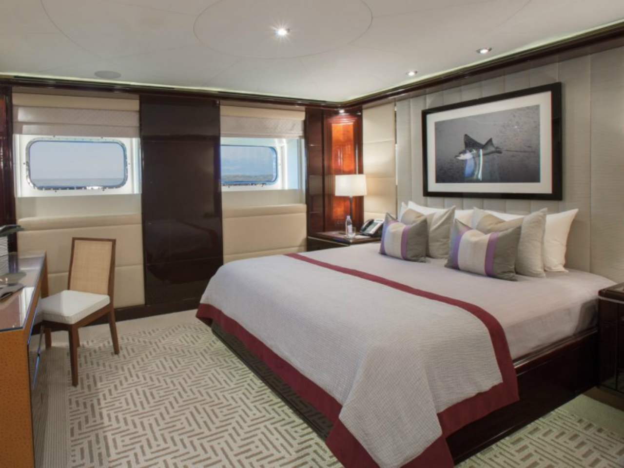 Ses cabines spacieuses offrent des finitions exquises, de grandes baies vitrées et des aménagements modulables. La suite principale, particulièrement somptueuse, comprend une chambre, un bureau, une salle de détente, deux dressings et trois salles de bain.