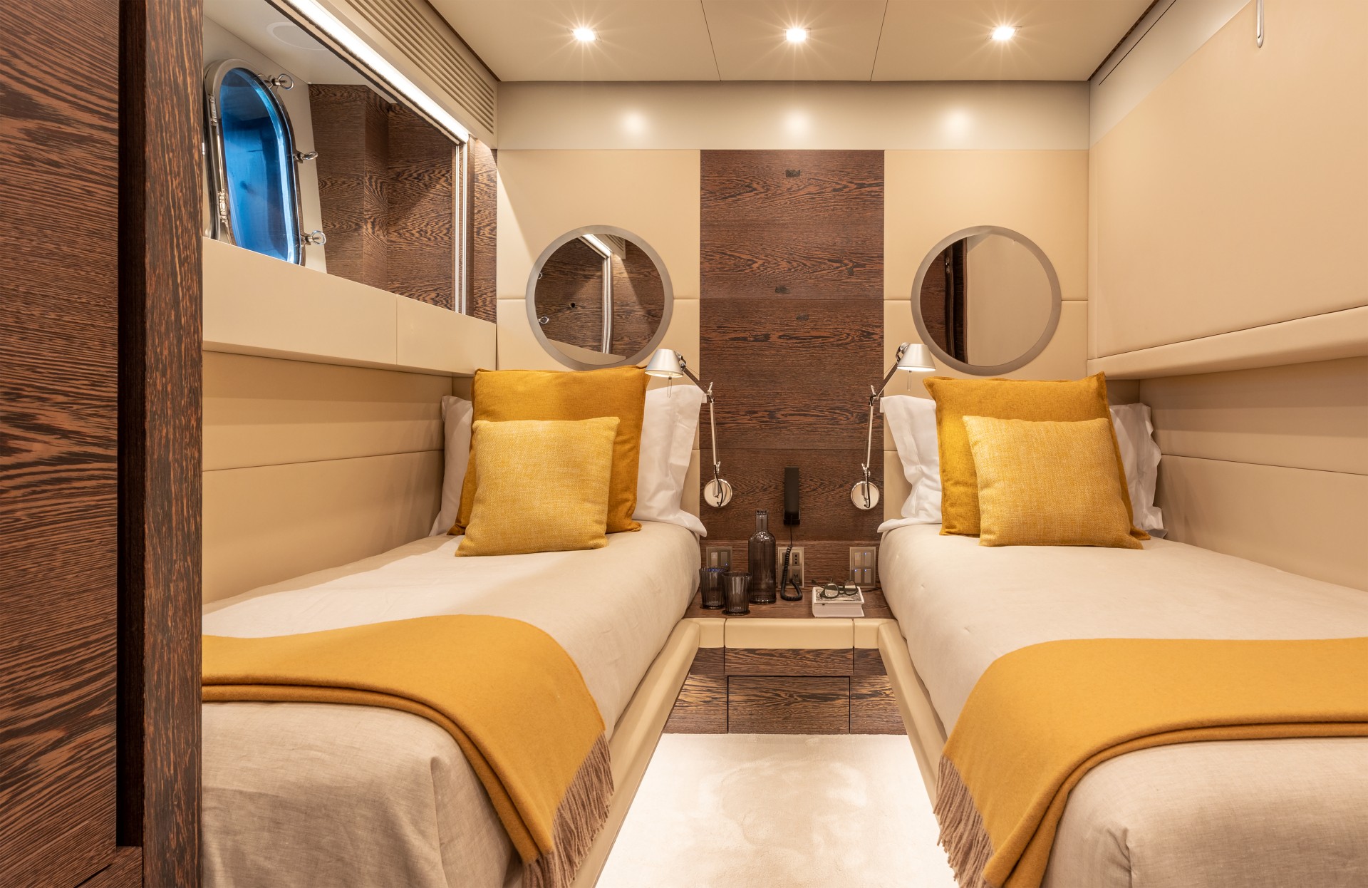 Son aménagement intérieur comprend une vaste suite propriétaire, une cabine VIP raffinée, deux cabines doubles et une cabine twin – l’équilibre idéal pour les familles ou les groupes d’amis. Avec 5 membres d’équipage dévoués à bord, chaque détail de votre croisière est soigneusement pris en charge.