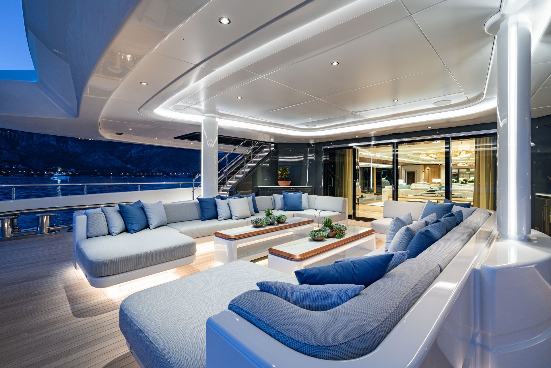 De son spacieux beach club à son jacuzzi de pont, en passant par son spa avec sauna et sa piscine privée, chaque détail a été pensé pour le bien-être et le raffinement. Un ascenseur dessert tous les ponts pour des déplacements sans effort, tandis que des équipements tels que les communications par satellite et les éclairages sous-marins apportent confort et ambiance à vos croisières.
