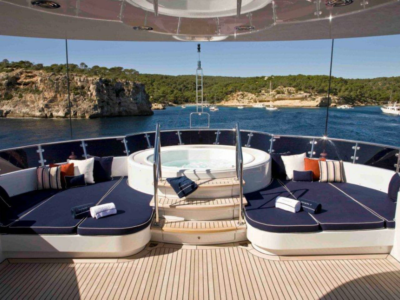 Sa coque en acier et sa superstructure en aluminium offrent plus d’espace à bord et une stabilité optimale au mouillage grâce à sa coque à déplacement intégral. Propulsée par deux moteurs Caterpillar, elle navigue confortablement à 13 nœuds, atteint 16 nœuds en vitesse maximale et bénéficie d’une autonomie de 4 500 milles nautiques à 12 nœuds grâce à ses 82 000 litres de carburant. Un système avancé de stabilisation garantit aux invités un confort exceptionnel, que ce soit au mouillage ou en navigation.