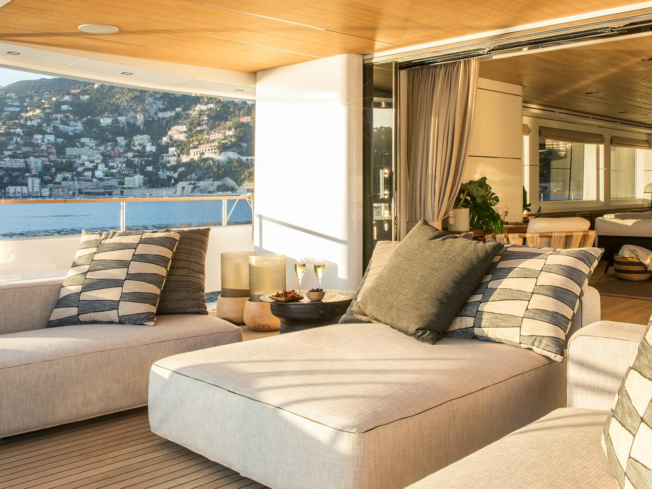 et… Lauréate du prix du Meilleur Design Intérieur 2019 de Boat International. Ses intérieurs spectaculaires, à l’esthétique organique, se prolongent harmonieusement vers de vastes espaces extérieurs jusqu’à la plage arrière.