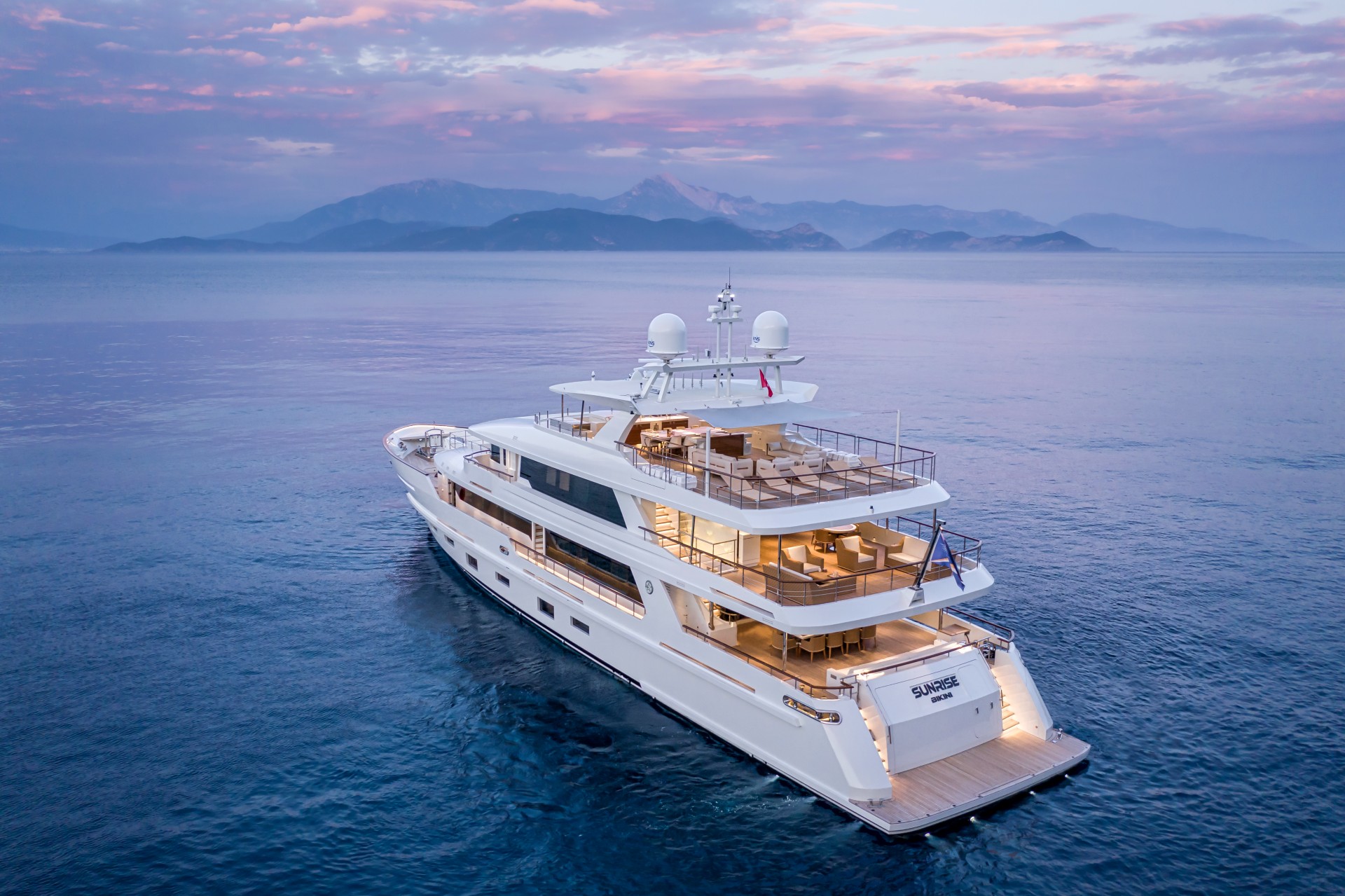 SUNRISE, yacht de 43,00 m construit en Turquie par Yildiz Gemi et livré en 2020. Alliant un design intemporel à une ingénierie moderne, il offre le parfait équilibre entre performance, confort et élégance.