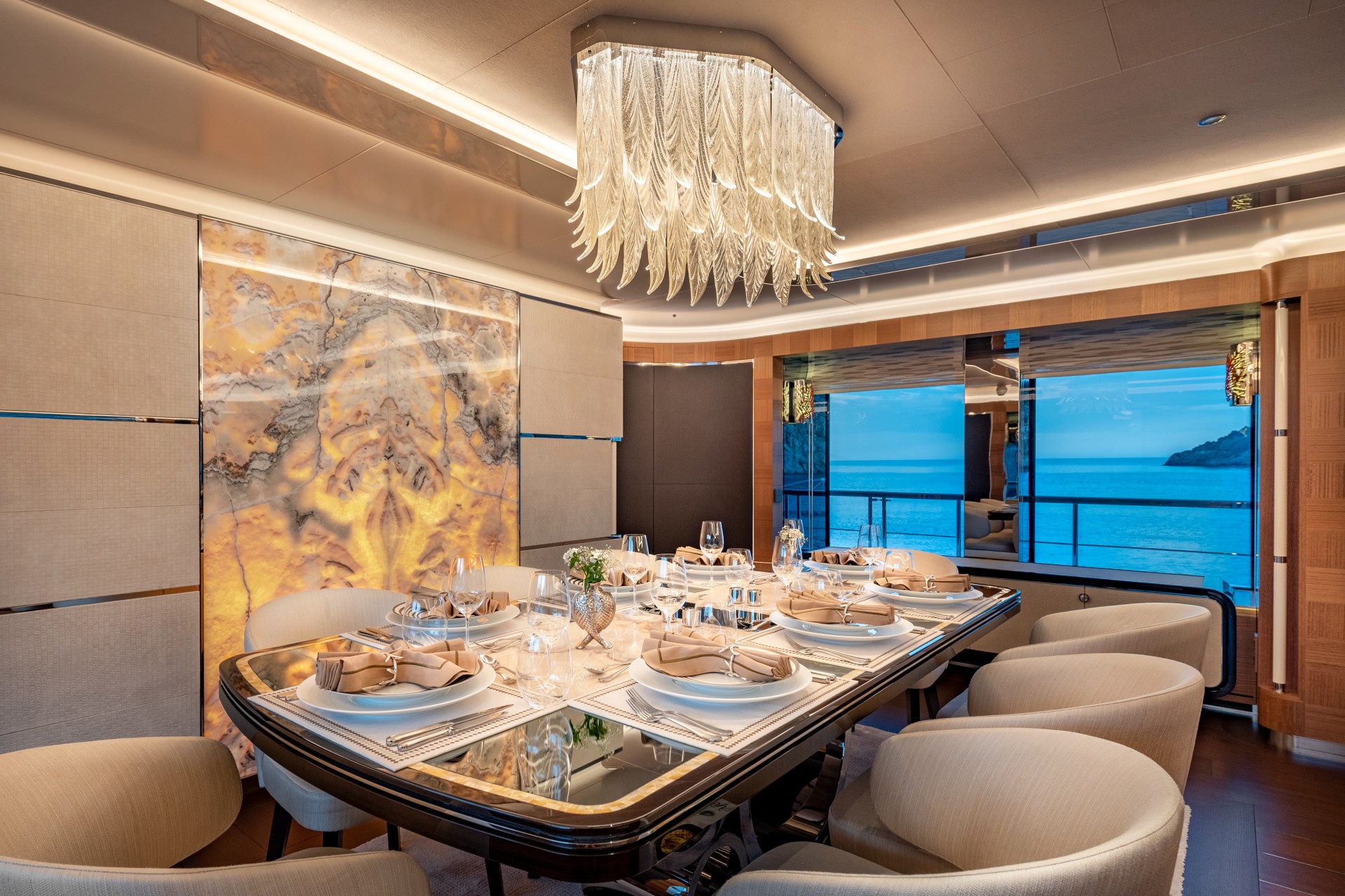 Son extérieur élégant s’accompagne d’un intérieur spacieux pouvant accueillir jusqu’à 12 invités dans 5 cabines luxueuses.